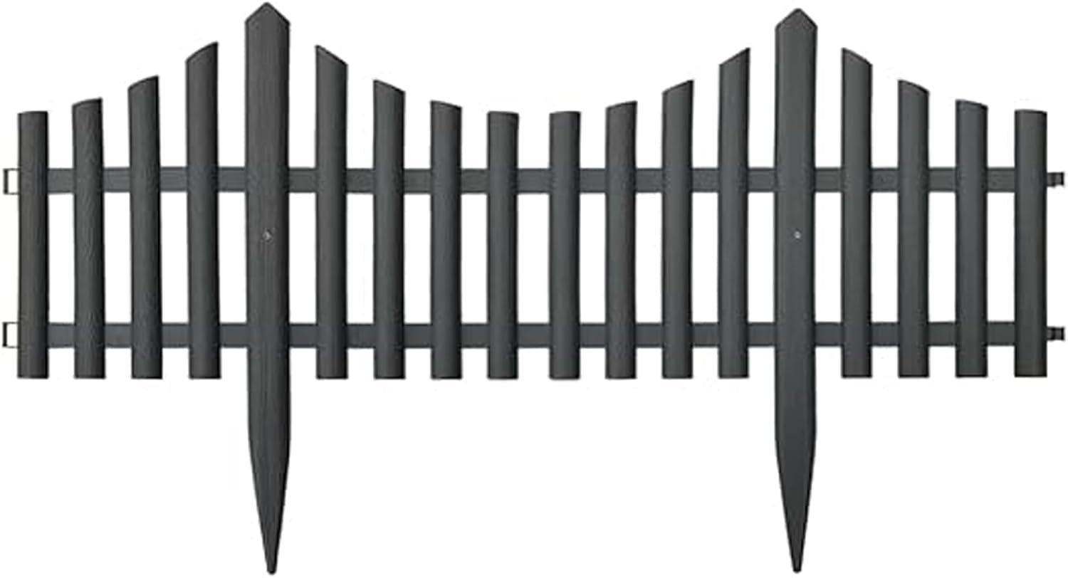 - WOOD EFFECT PICKET FENCE: It contours to any shape for bespoke landscaping around trees, flower beds, bushes, gardens, and yards, among other things. Beautiful, basic style appearance, excellent quality, lightweight, strong, and long-lasting durability. It is suitable for all weather conditions and provides UV protection. It’s ideal for gardens, courtyards, farms, and other similar settings. It may offer your yard a modern look, giving you an experience that combines nature and fashion.